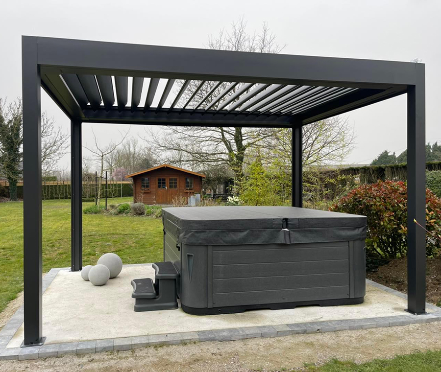 Dalle pour spa ou/et pergola bioclimatique, plots béton
